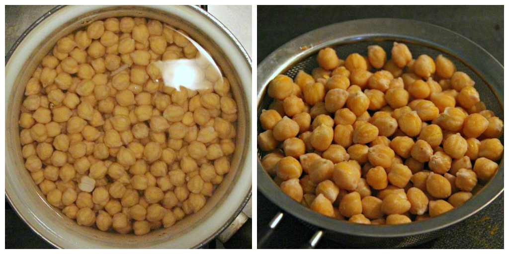 - Measure the dried chickpeas. Put into a big bowl with about 3 times as much water. Refrigerate for 1 or 2 days. Change the water every day.