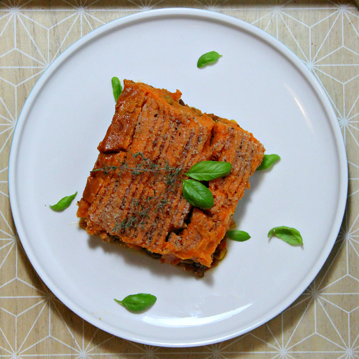The sweet potato mash is used instead of the usual potato mash, it gives a sweetness and something mellow to the dish. Use a wide shallow dish if you like it more crunchy on the top. Use a more deep dish if you prefer it saucy and thick. What ever your heart desires. Optionally you could choose to broil the top in the end for extra crunch !