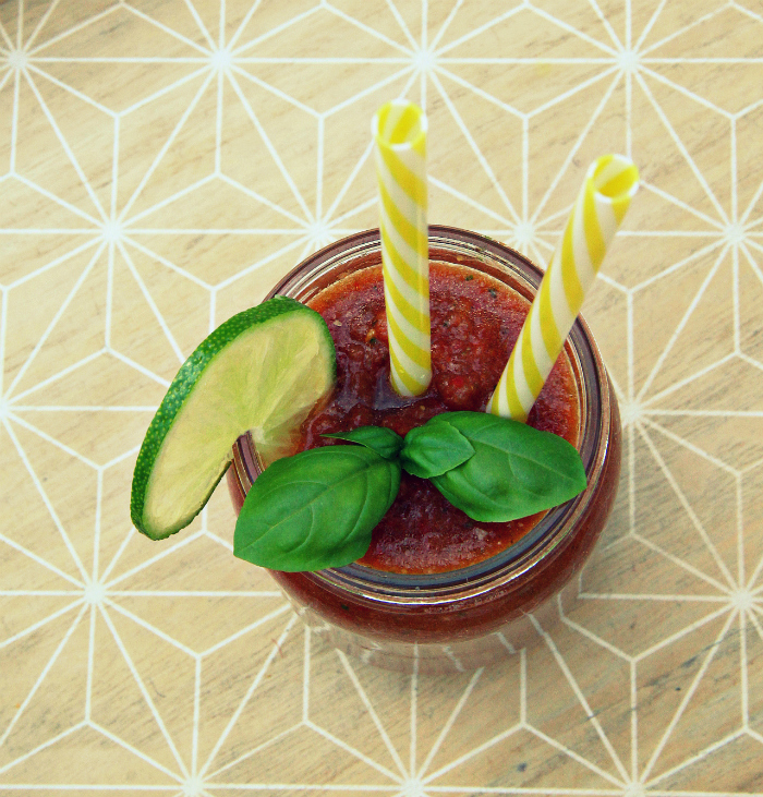 This savoury dish can be served in a glass with a thick straw or eaten as a soup, good in the hot summer afternoons as well as in the evenings.